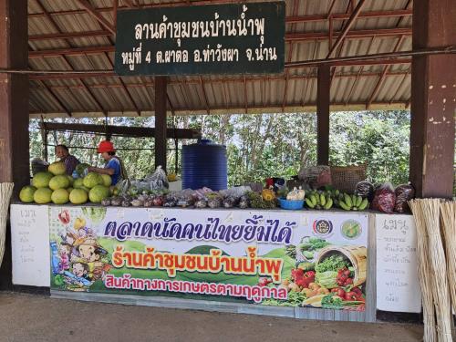 วันที่ 11 พฤศจิกายน 2568 สำนักงานพัฒนาชุมชนอำเภอท่าวังผา โดยนางศรีแพร เหลี่ยมพูล พัฒนาการอำเภอท่าวังผา พร้อมด้วยเจ้าหน้าที่พัฒนาชุมชน ลงพื้นที่ติดตามและสนับสนุนการดำเนินงานตลาดนัดคนไทยยิ้มได้ เพื่อให้คำแนะนำและสนับสนุนการดำเนินงานตลาดสินค้าเกษตรตามฤดูกาลของร้านค้าชุมชนบ้านน้ำพุ ณ ลานค้าชุมชนบ้านน้ำพุ หมู่ที่ 4 ตำบลผาตอ อำเภอท่าวังผา จังหวัดน่าน